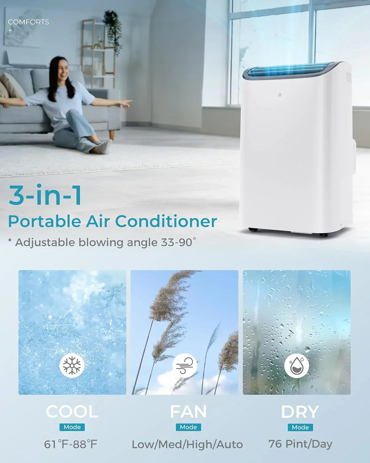 EUHOMY 8,000 BTU Portable Air Conditioners 4-in-1 Portable AC Unit Up to 350 Sq.Ft