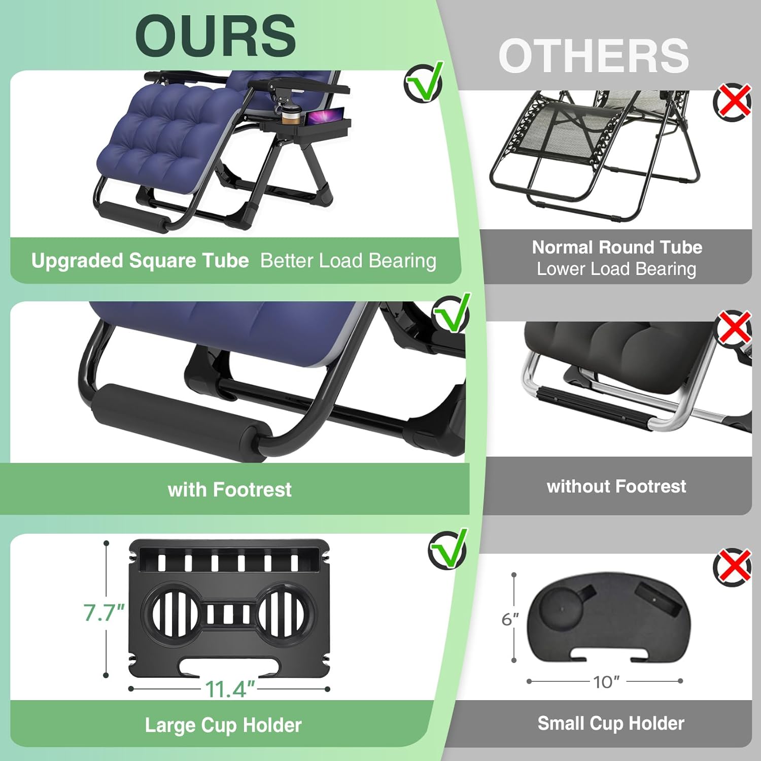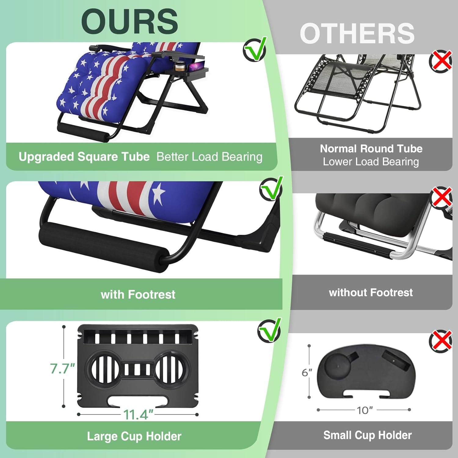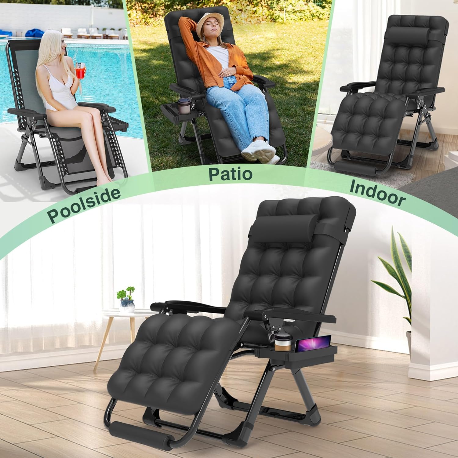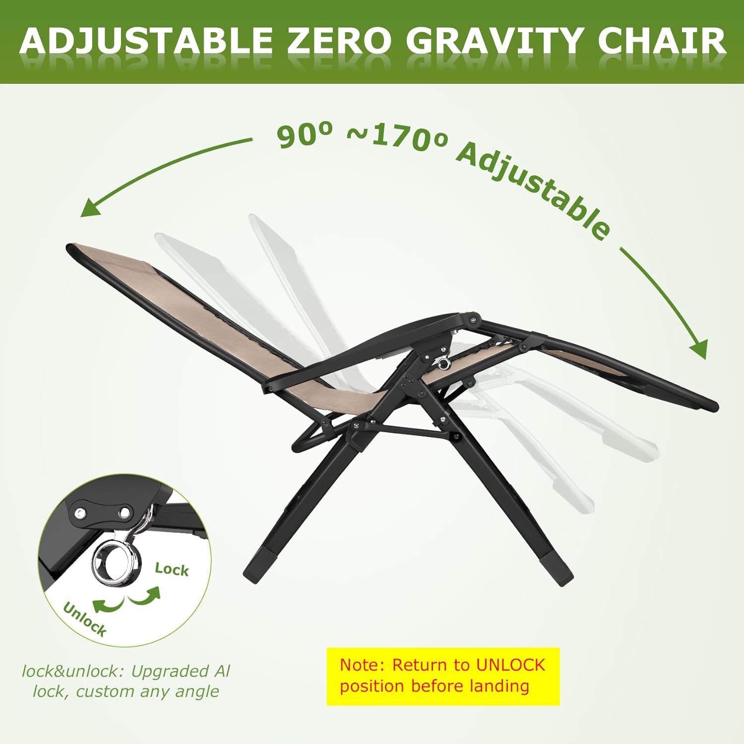 • Indoor and outdoor patio chair folding lounge chair zero gravity chair with removable cushion camping lounge chair