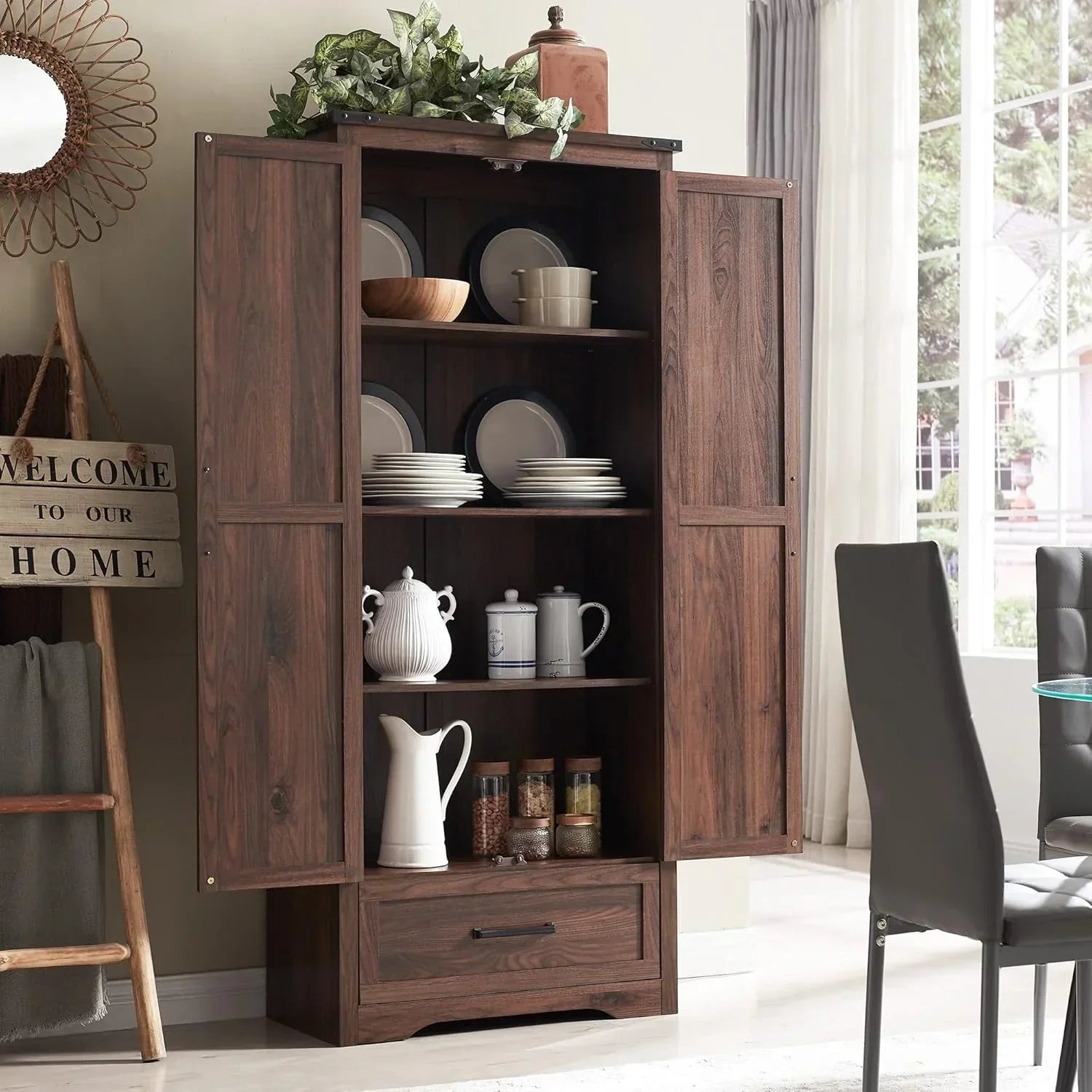 Note Before Purchase: Our 72-in wooden pantry uses large single-board design for the main structure��unlike many jointed alternatives��for added durability. However, rough shipping may sometimes cause damage. If you experience any issues, please email for a quick replacement!