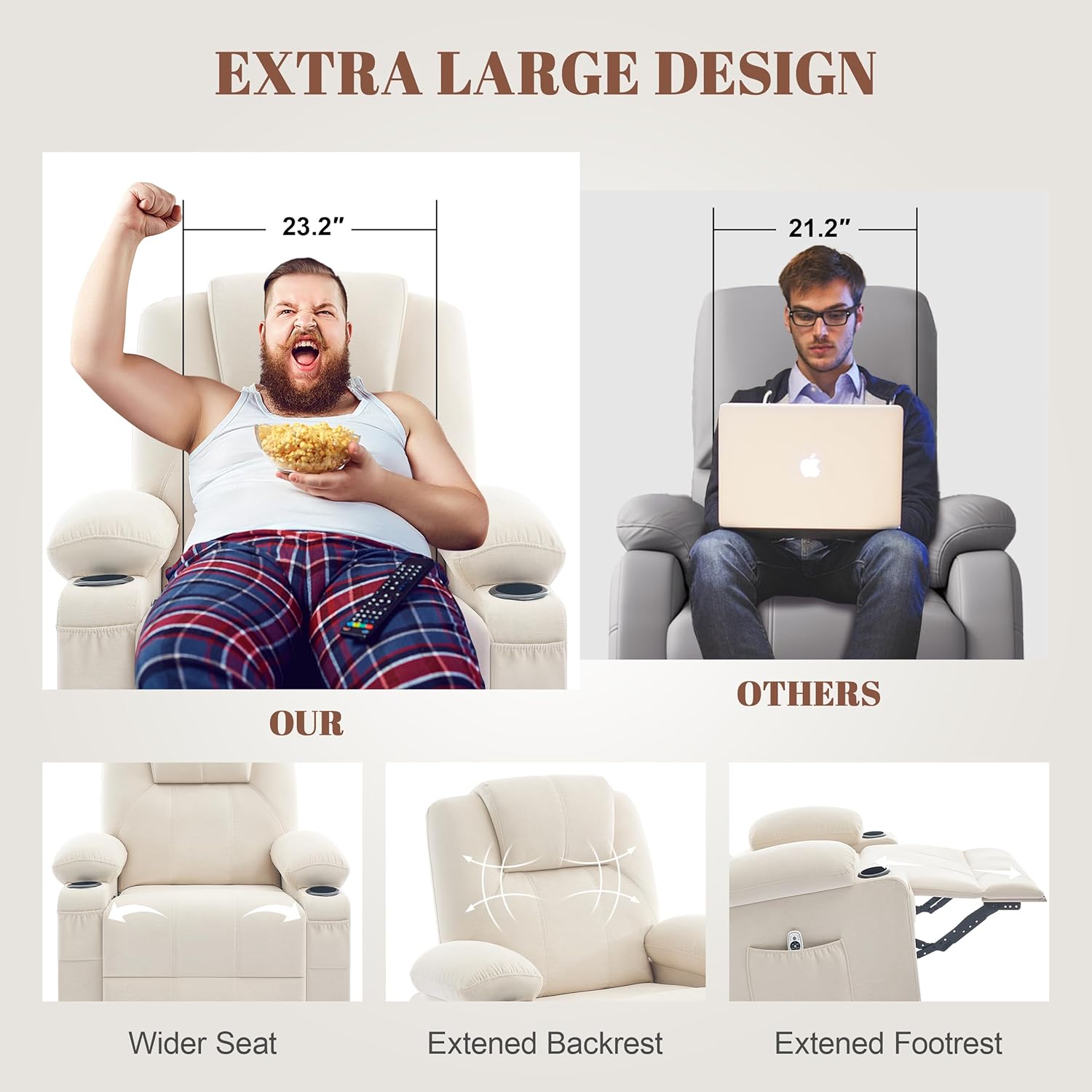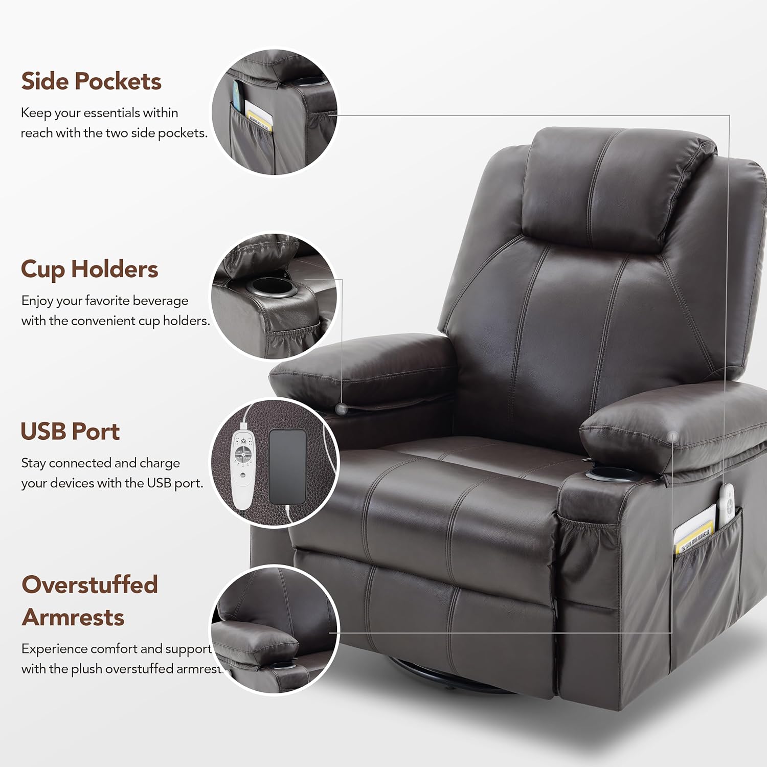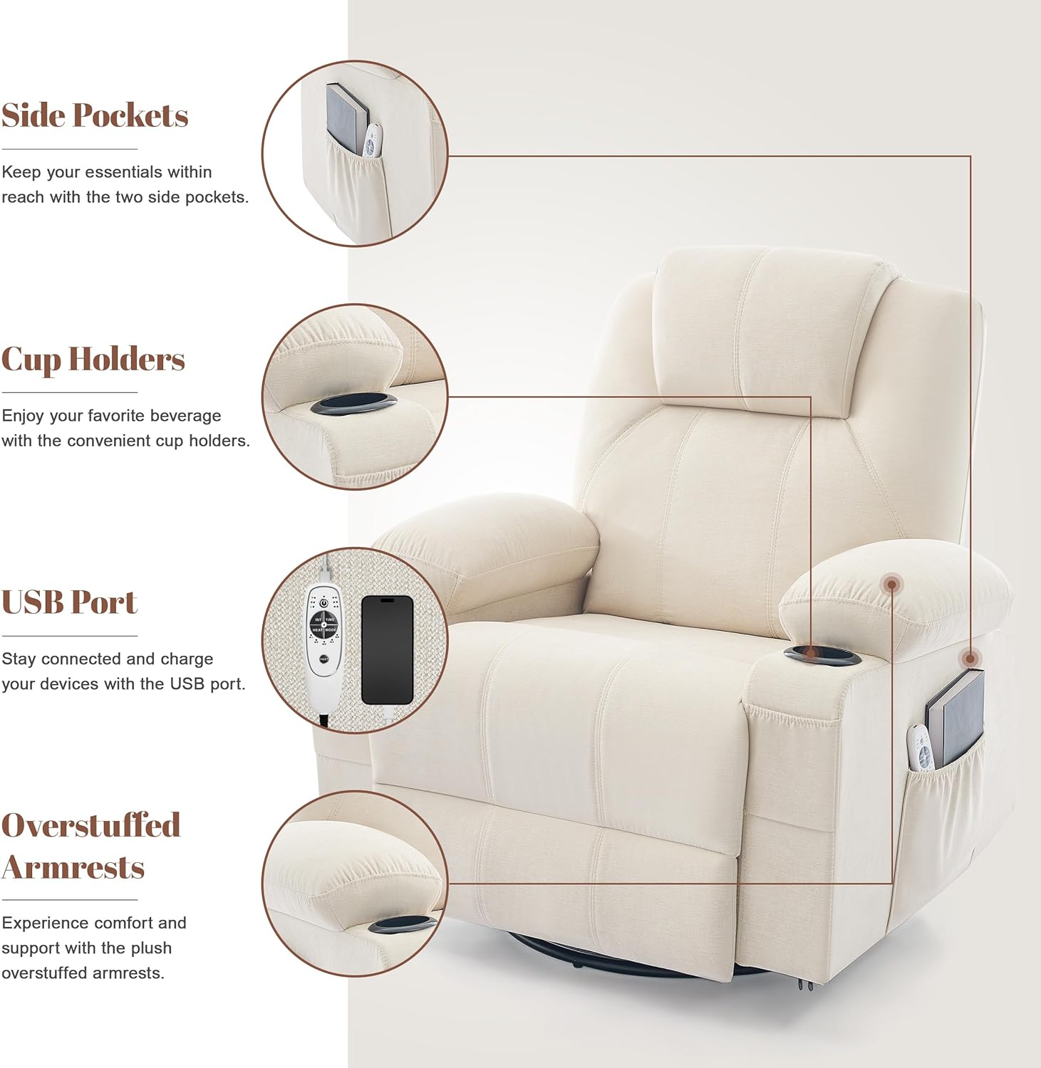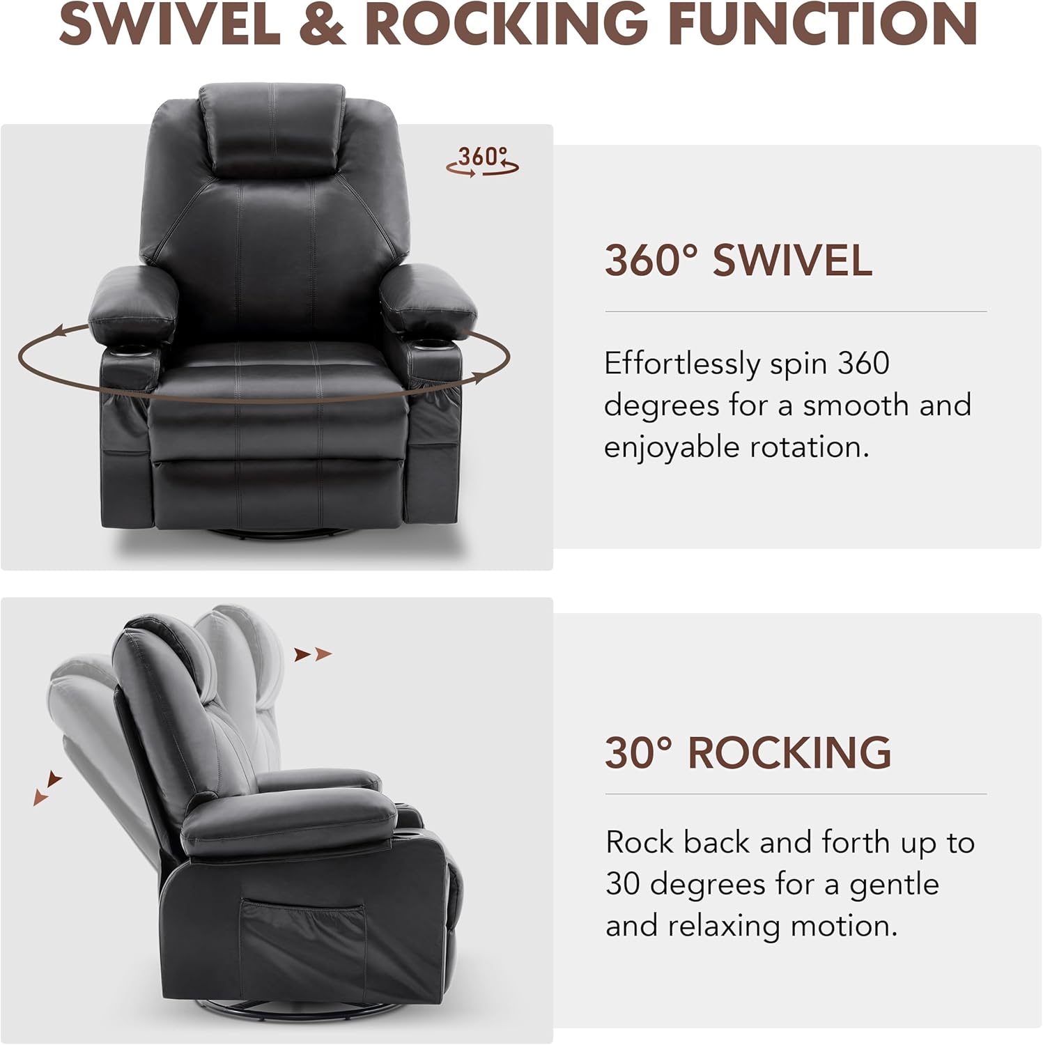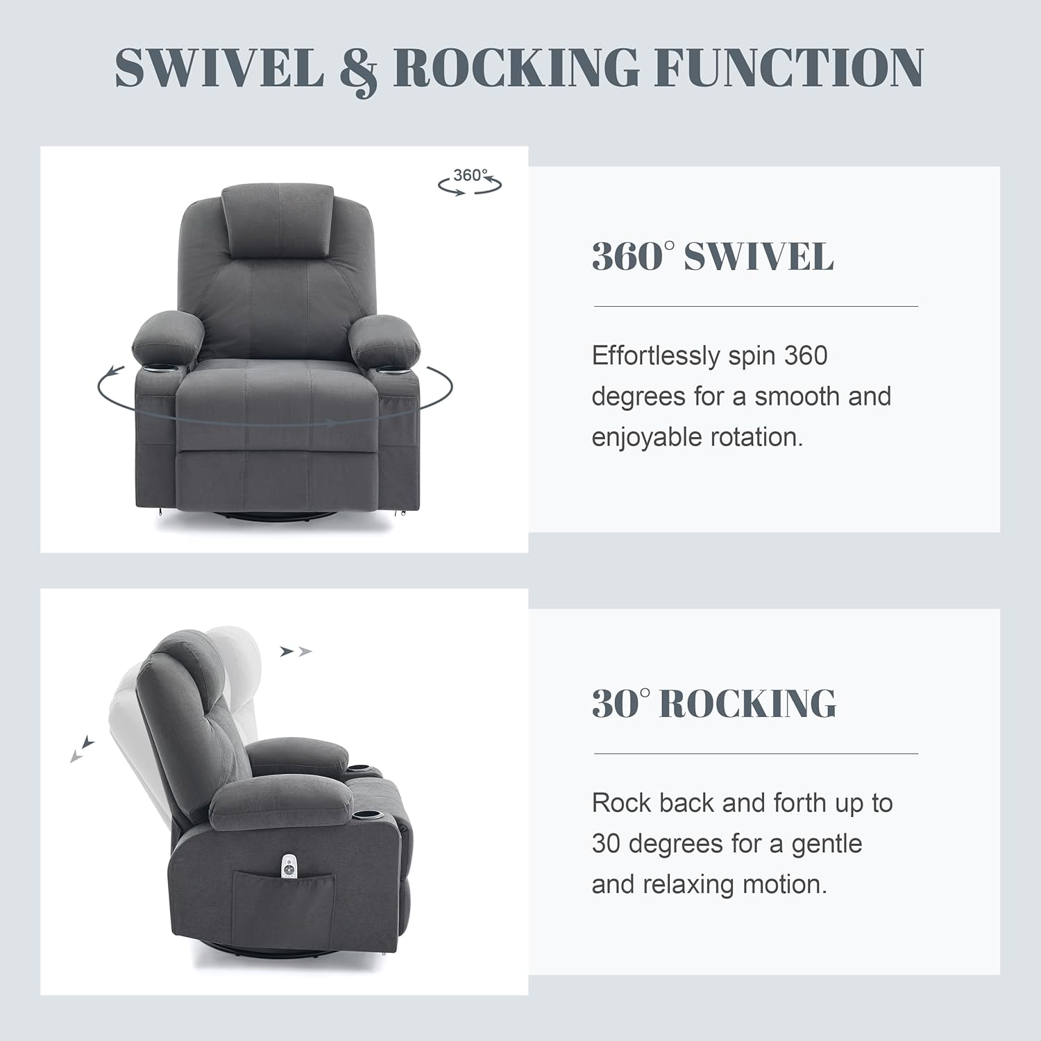 • Large Swivel Rocking Recliner with Heating and Massage Function, 360 Degree Swivel Rocking Single Sofa