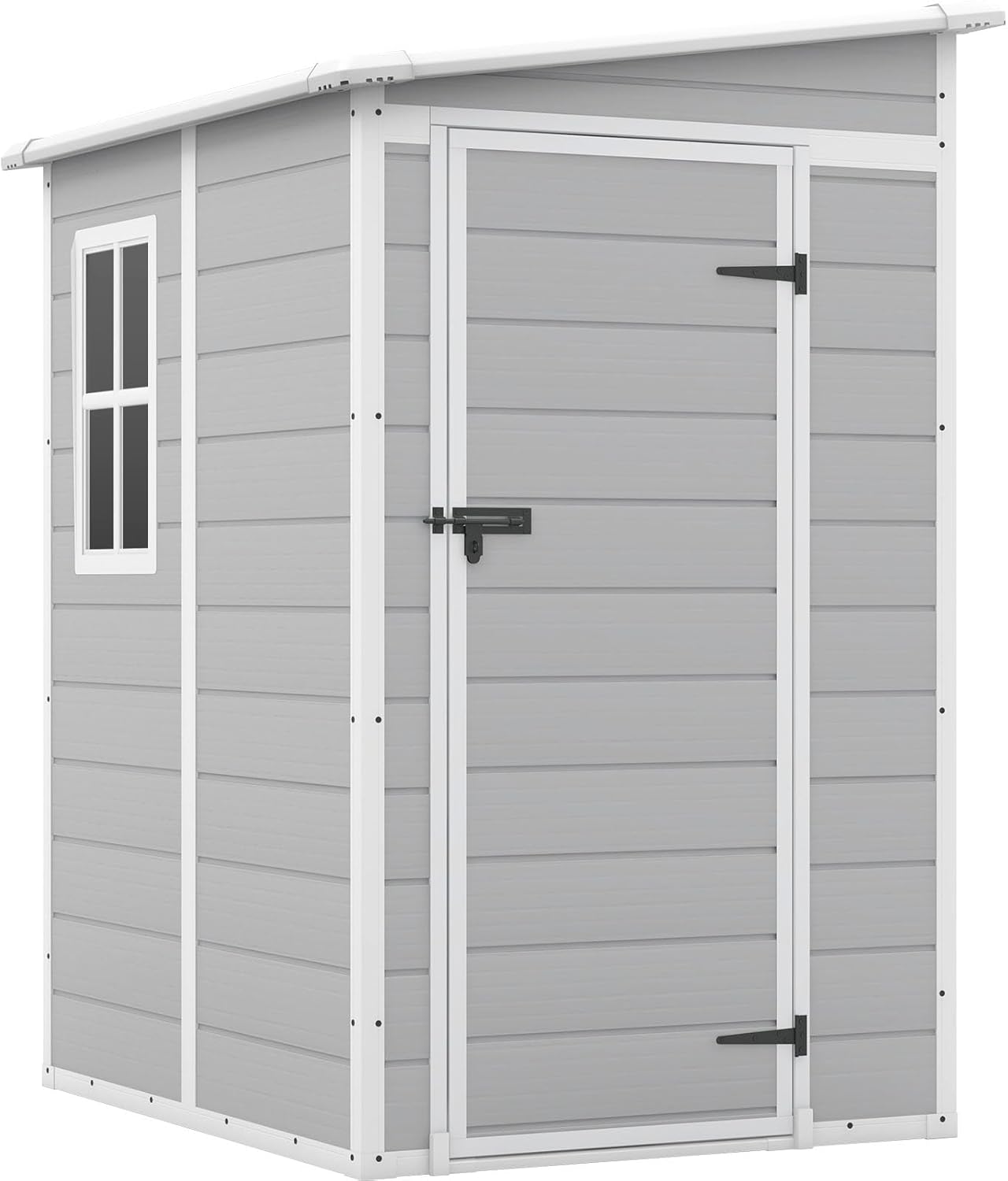 - Weather Resistance: Crafted from durable resin material, this shed offers excellent weather resistance, ensuring your belongings stay safe and protected year-round. The UV-resistant exterior finish ensures long-lasting color vibrancy and protection against fading caused by sun exposure.