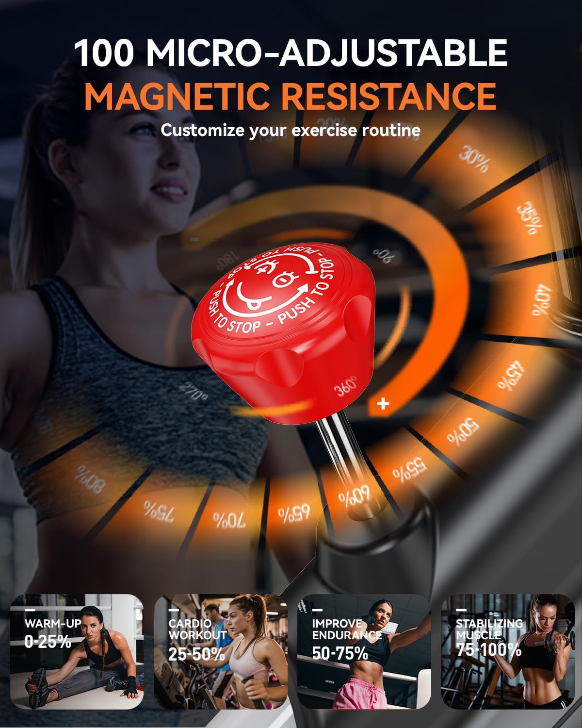 - ULTRA SILENT MAGNETIC RESISTANCE��锟�Built with tension control system, it is convenient for you to customize your workout tension levels for an easier or more difficult workout. Designed with ergonomic resistance, ensures smoother and ultra quieter workouts while cycling, no worry for disturbing others. Virtually no maintenance. Belt drive mechanism.