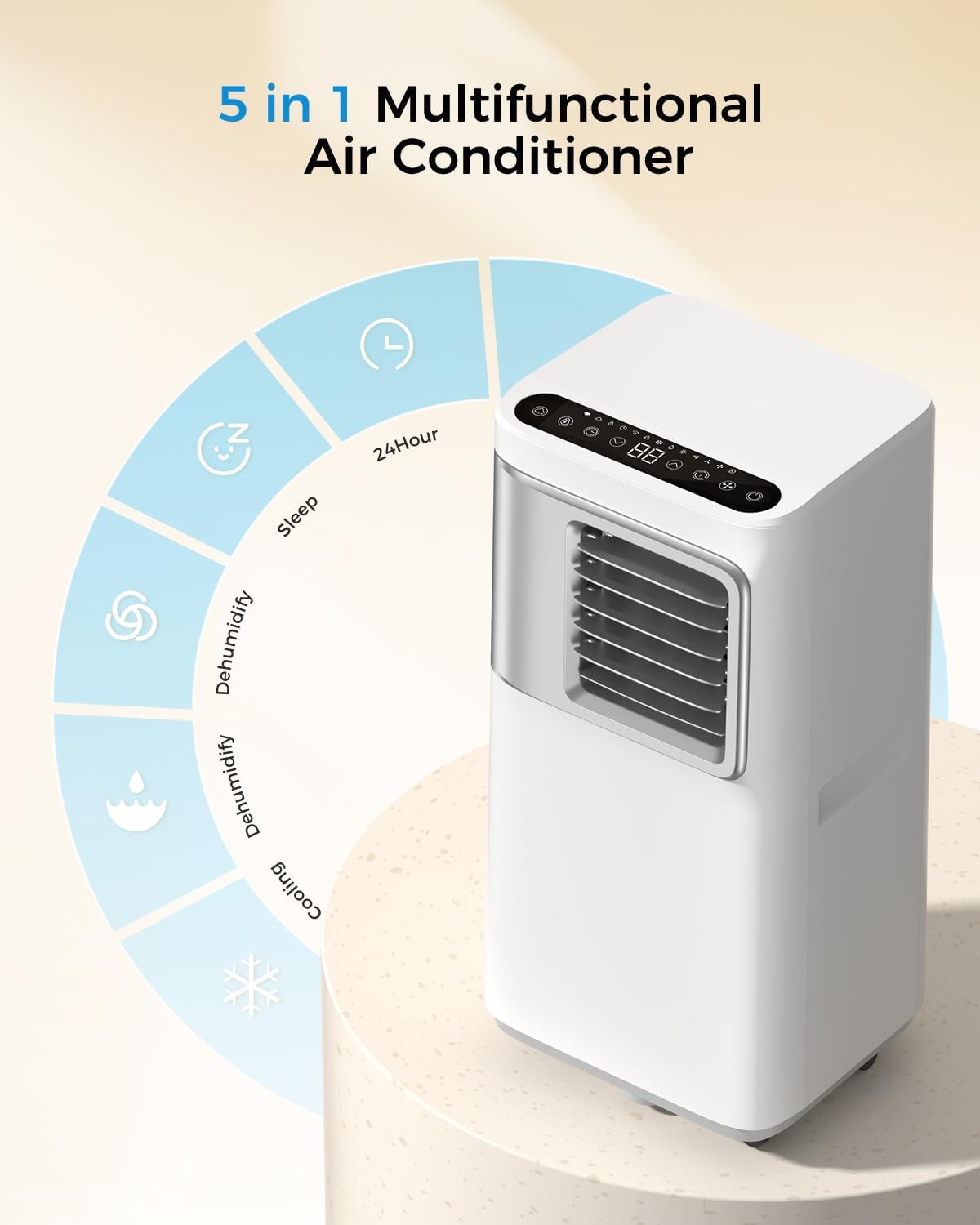 • 5-in-1 Versatile Design: This portable air conditioner offers convenient 5-in-1 functionality including cooling, 3-speed fan, sleep and dehumidification to meet your seasonal needs. You can freely adjust the temperature in cooling mode, ranging from (61��F to 88��F) during the hot season. The dehumidification mode effectively reduces humidity in small rooms and acts as a fan to circulate the air in the room at all times, for precise and intelligent control of your climate2