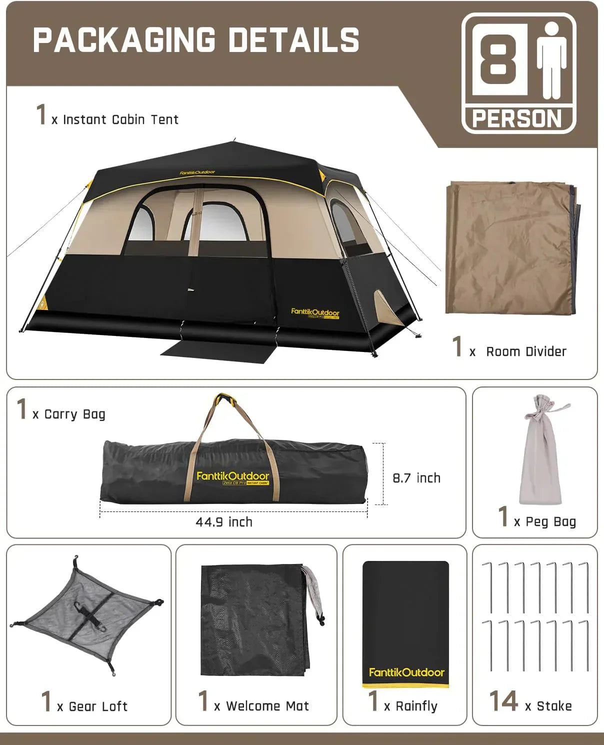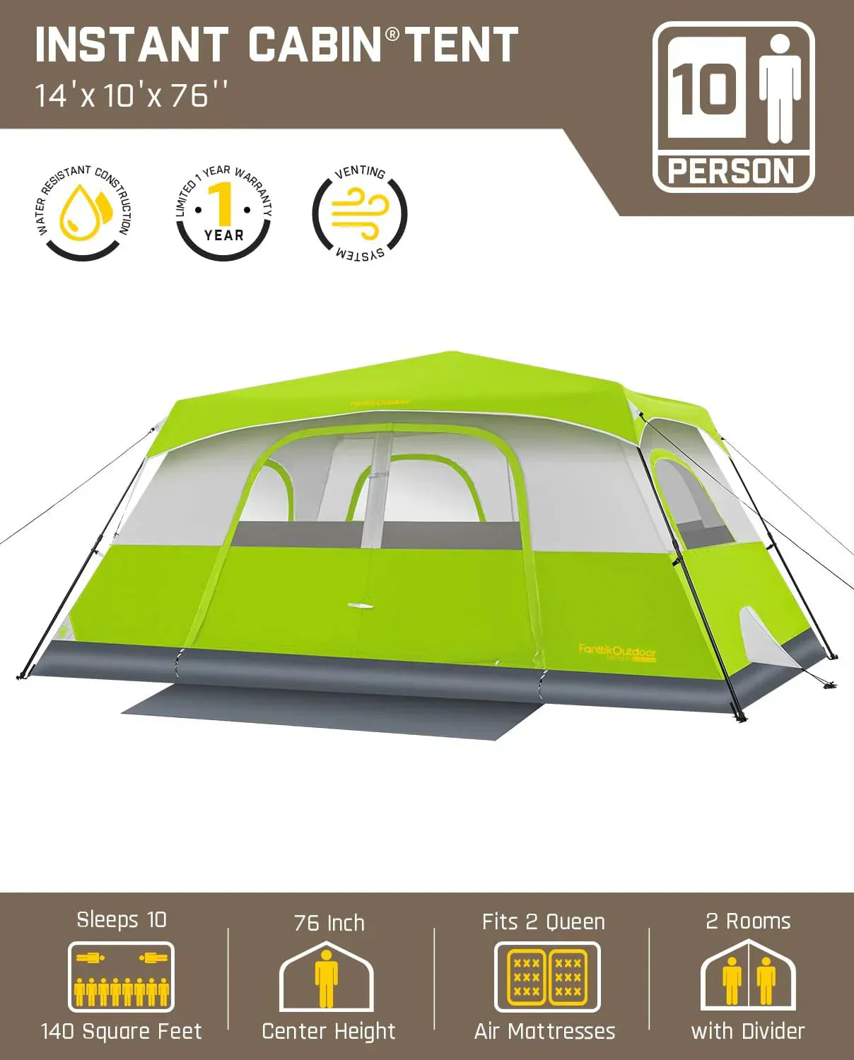 Portable camping tent for 4/6/8/10 people with instant cabin and rainproof and windproof