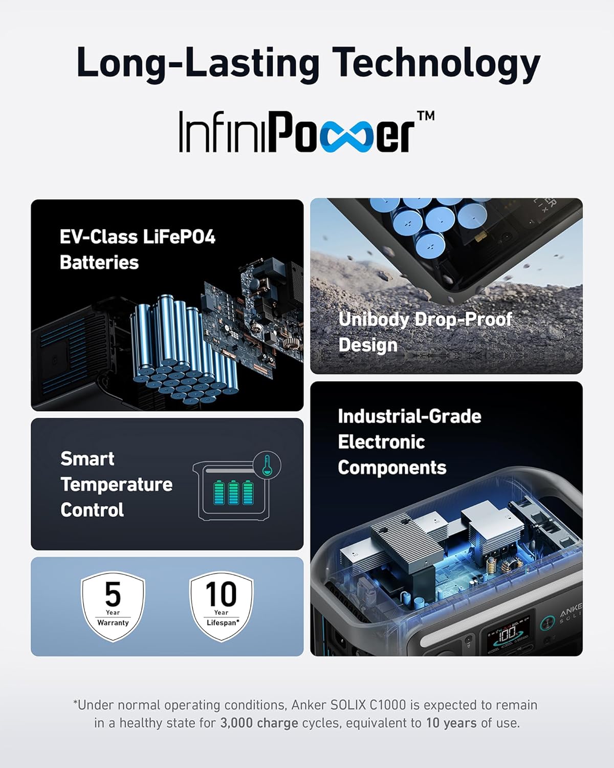 Experience reliable, high-capacity power anywhere with this Portable Power Station. Delivering 1800W continuous power and 2400W peak output, it supports a wide range of devices. Its advanced 1056Wh LiFePO4 battery ensures long-lasting performance and safety. Fully recharge in just 58 minutes, minimizing downtime and keeping you powered on the go. Ideal for outdoor adventures, emergencies, or remote work, this solar generator combines efficiency and convenience in a compact design. Stay energized wherever life takes you.