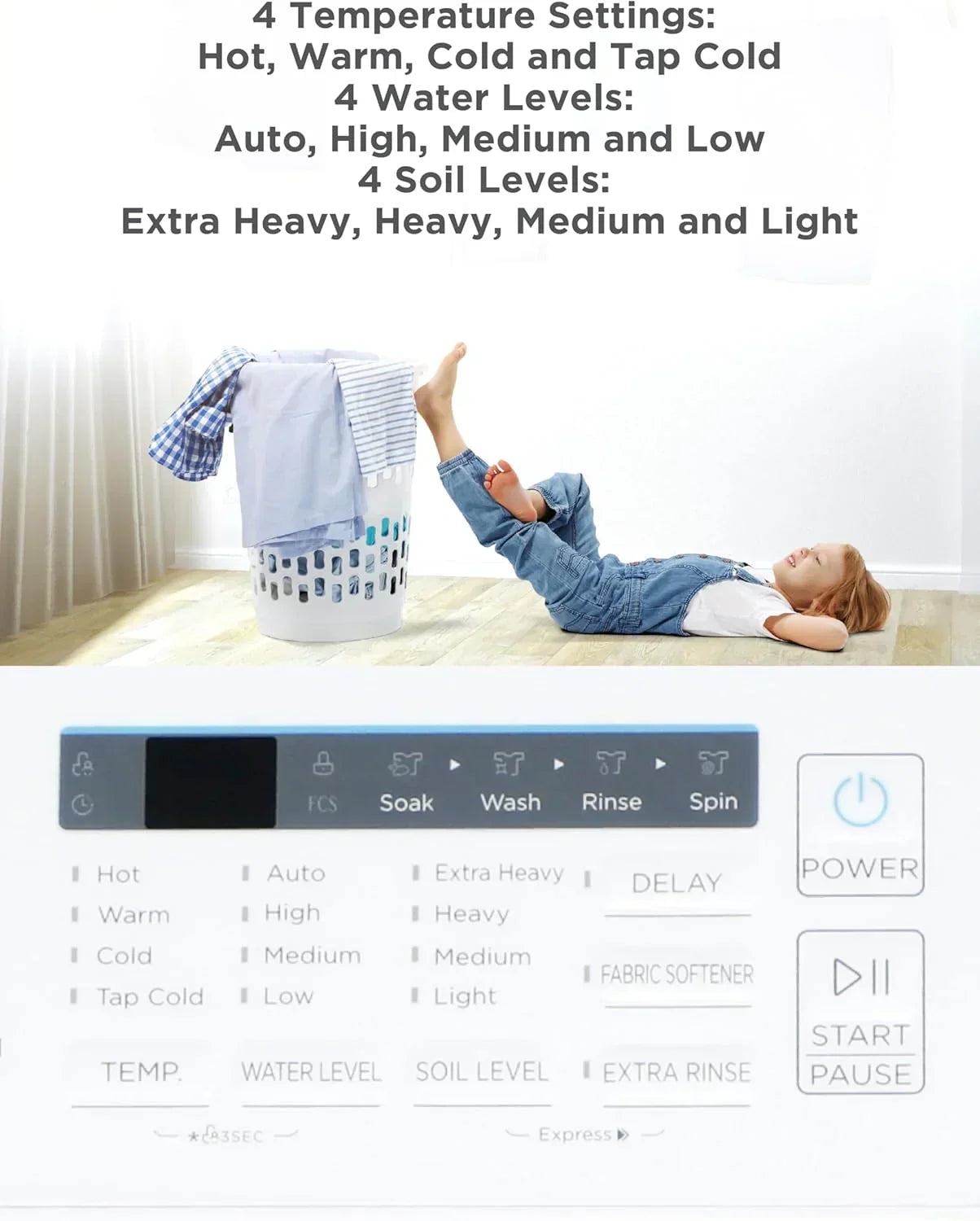 Enjoy additional capabilities on this portable washer machine, including Auto Shutoff, and Child Lock. Because this is an impeller washer, you can even launder baby clothing, diapers, as well as lingerie without entanglement problems.