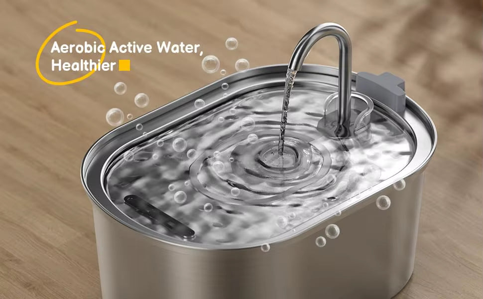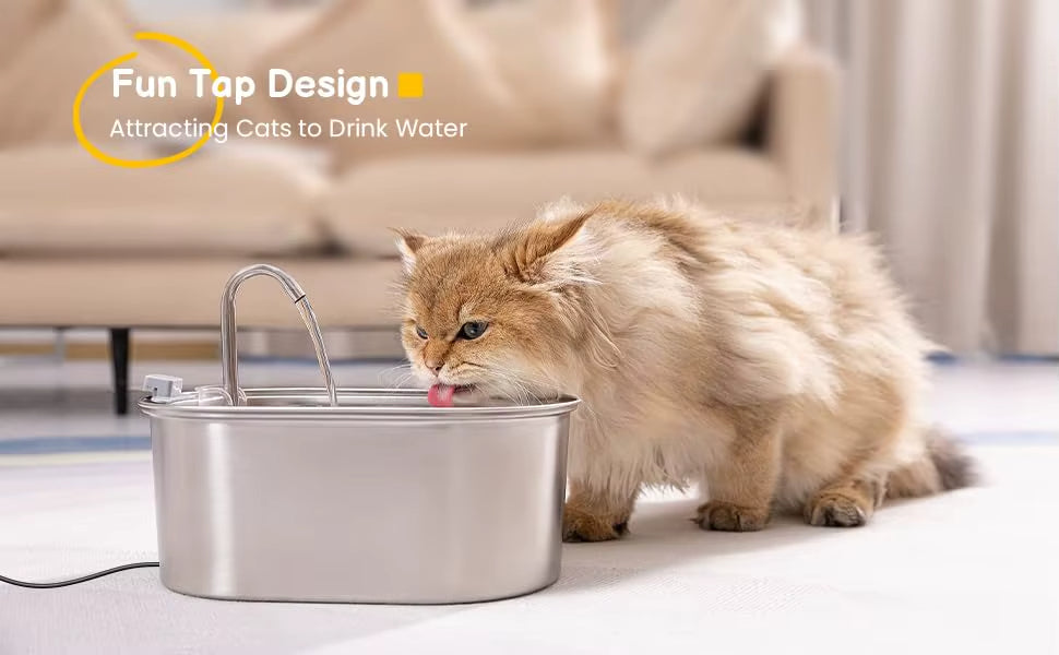 Quiet Pump — Under 35dB The pump operates at under 35dB during normal use. That's quieter than a whispered conversation. It can run continuously in a bedroom, kitchen, or living room without drawing attention. Cats that startle easily tend to accept this fountain faster than louder models.