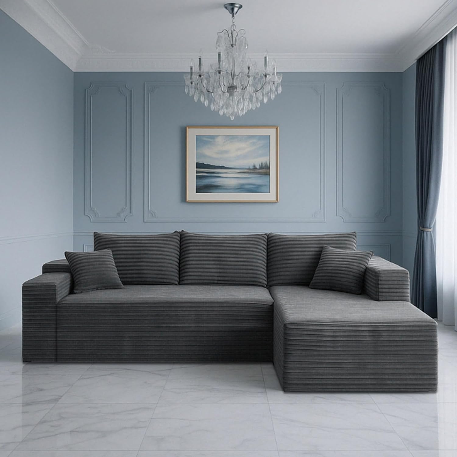 Cloud sofa with L-shaped lounge chair modern modular sofa with deep seats