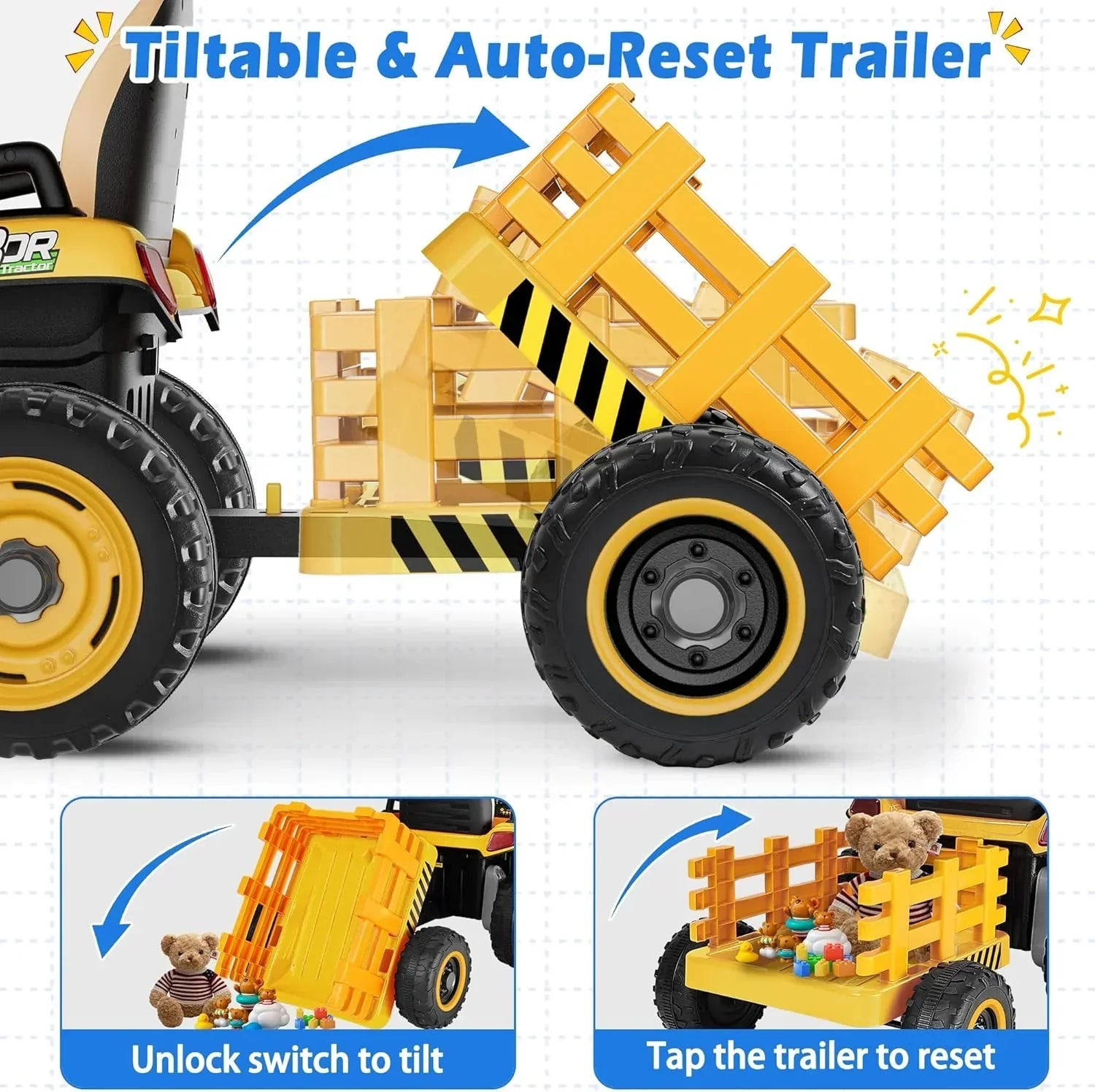 • 24V Ride On Tractor Tiltable Detachable Trailer 2x65W Motors EVA Tires Remote Control